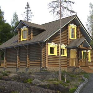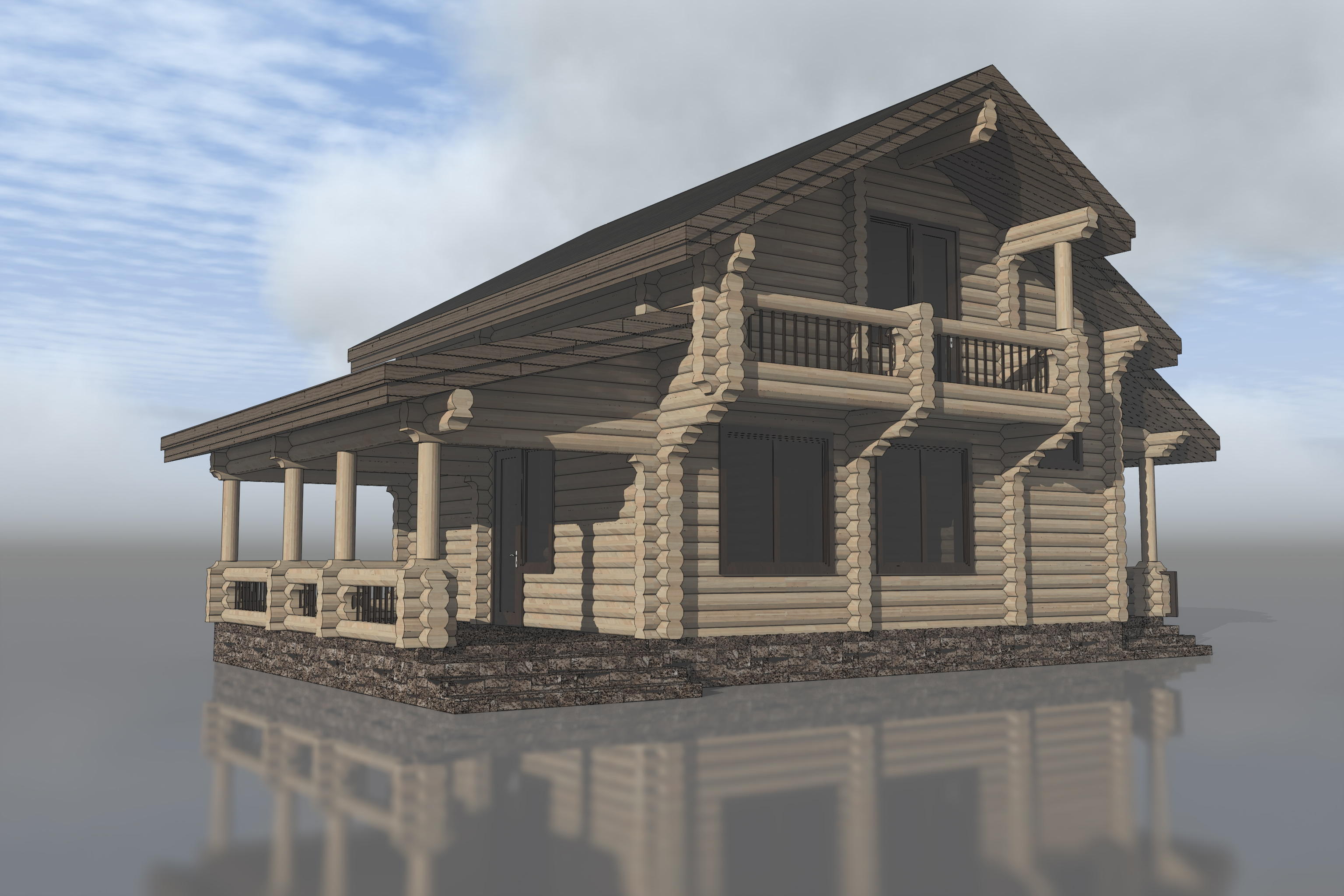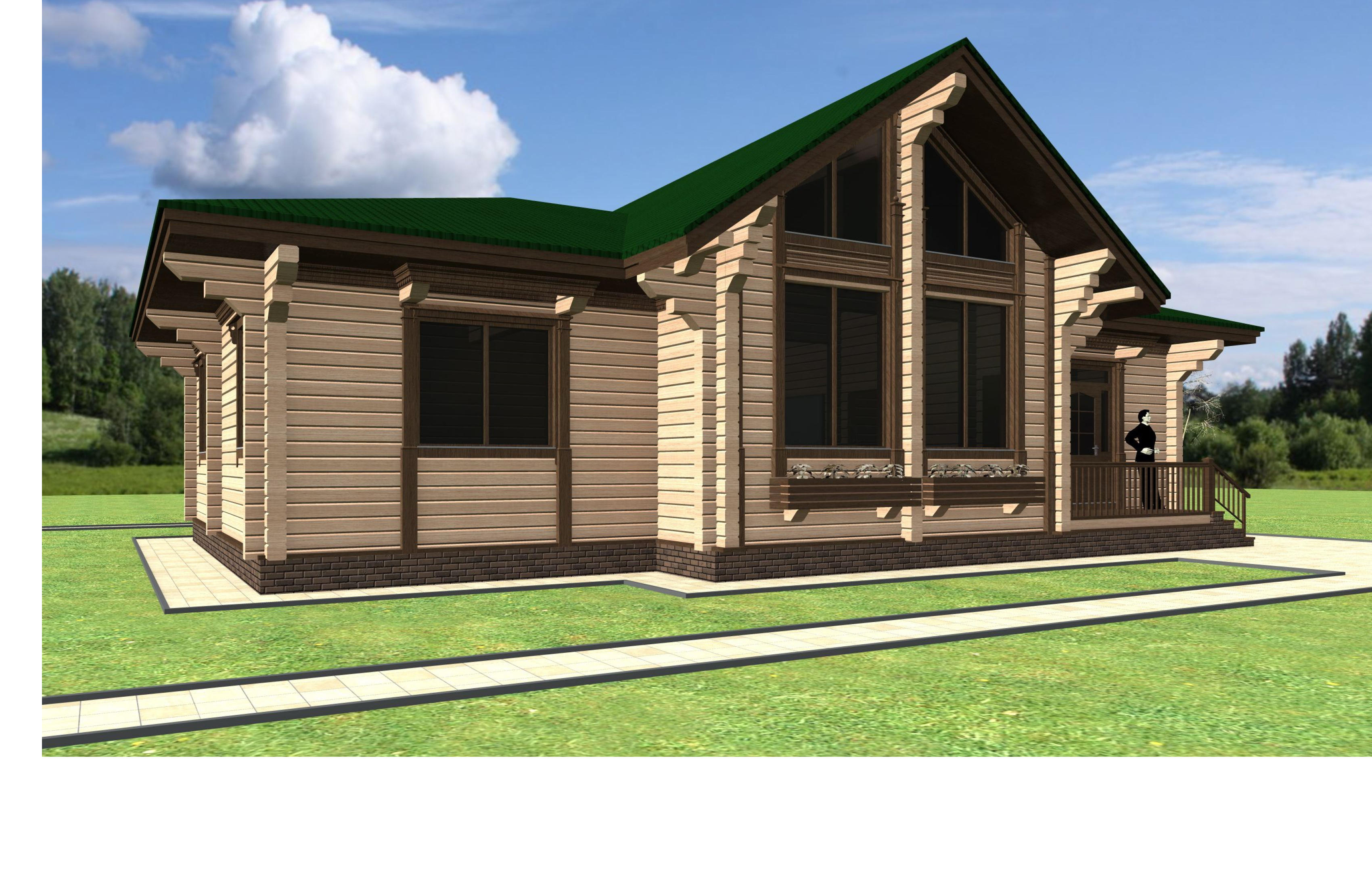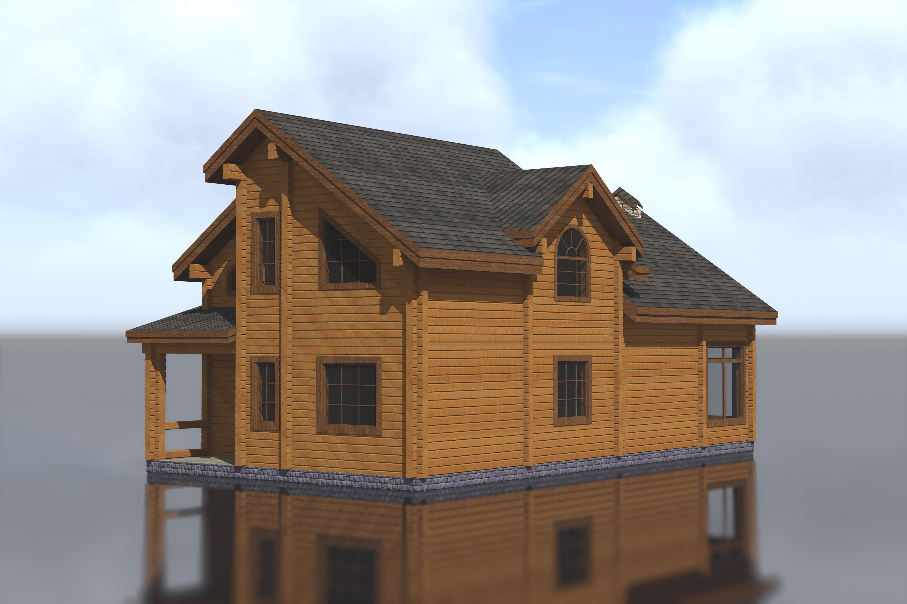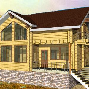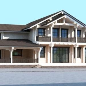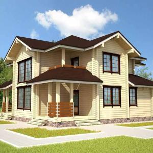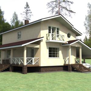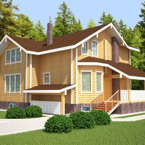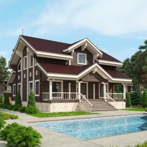Первые этажи отделываются грубой штукатуркой, мансардные - обшиваются деревом с имитацией бруса. Балконы и террасы полностью отделаны деревом.