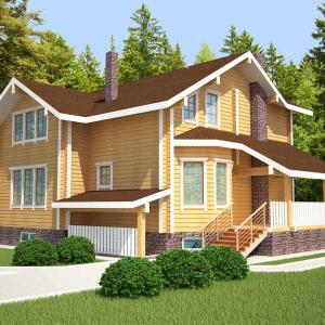 Светлый и комфортный деревянный дом из клееного бруса с тремя большими спальнями на мансардном этаже. «Бастион» - это проект, в котором при сравнительно небольшой площади (183 м2) реализовано все необходимое для семьи, приема родственников и гостей.